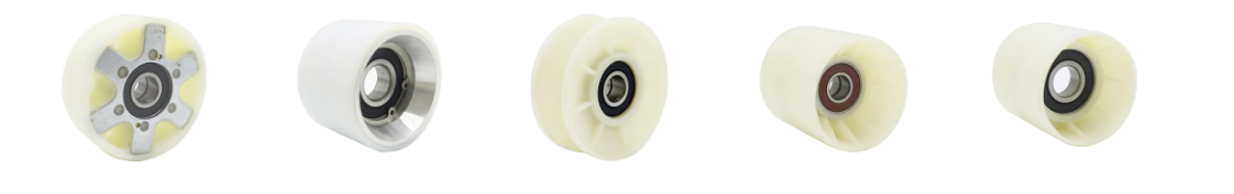Penggelek eskalator berkualiti tinggi biasanya diperbuat daripada plastik kejuruteraan seperti nilon dan poliuretana, dan mengandungi galas ketepatan. Struktur ini berfungsi untuk mengurangkan getaran dan bunyi.